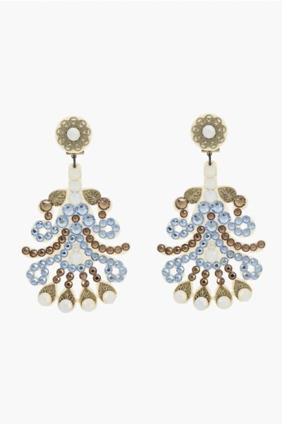 Golden Effect Metal Earrings Embellished With Rhinestones In Pink