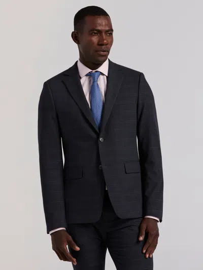 Men's Slim Blue Windowpane Suit Jacket, Size 46, Polyester/elastane/viscose In Multi