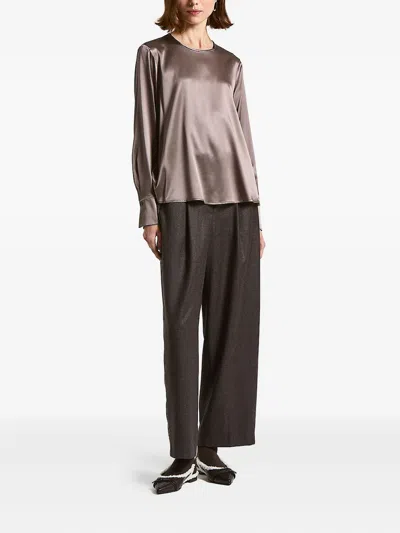 Silk Blouse With Pleated Front And Buttoned Sleeves In Neutral
