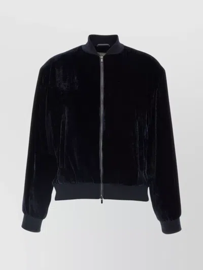 Washed Viscose Velvet Bomber Sweatshirt In Black
