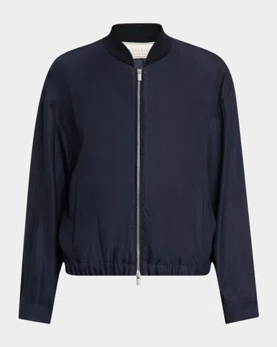Zip-front Twill Bomber Jacket In Navy Blue