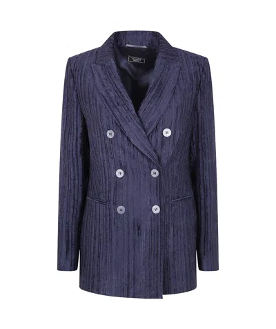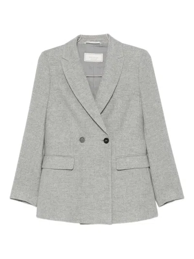 Flap-pockets Double-breasted Blazer In Gray
