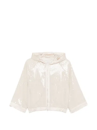 Boxy Quilted Short Jacket With Adjustable Hood In Neutral