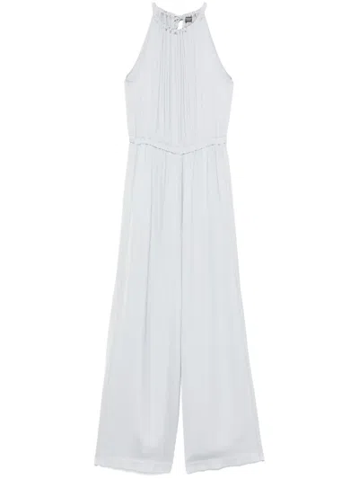 Fluid Satin Jumpsuit Sleeveless Belted Wide Leg In Brown