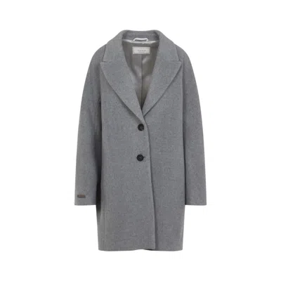 Mid-length Grey Coat With Notched Lapel In Gray