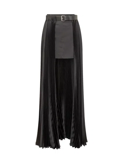 皮革腰带打褶科技织物半身裙