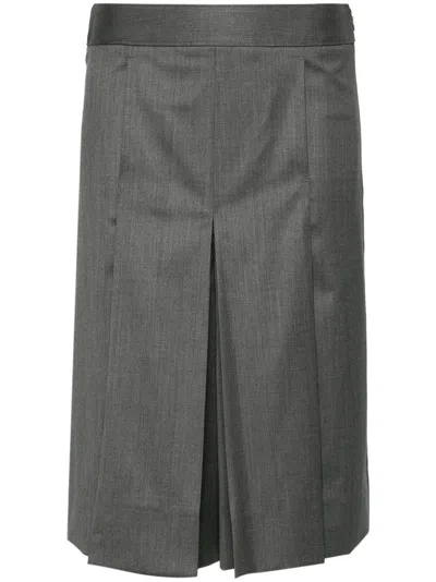 Pleated Stretch Wool Culottes In Grey