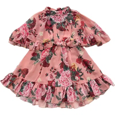 Kids Flora Flower Print Dress In Pink Flower Print