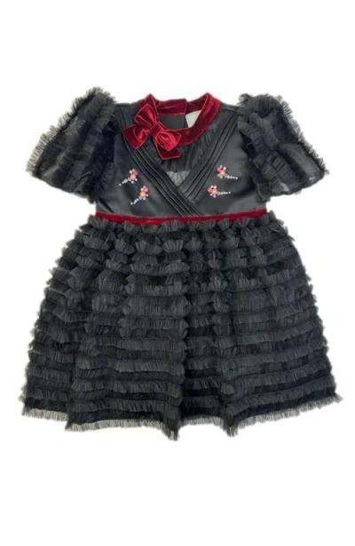 Kids Kylie Tulle And Organza Dress In Black And Burgundy