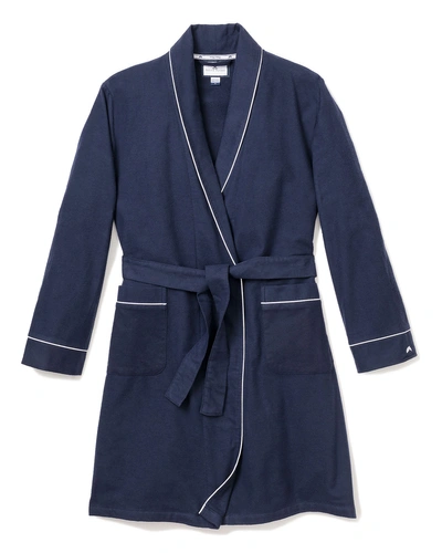 Kids' Flannel Contrast-piping Robe In Navy