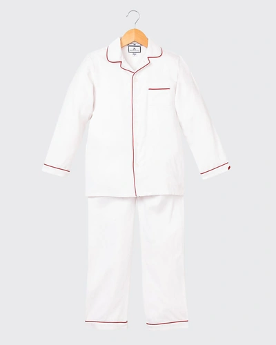 Kids' Solid Pajama Set W/ Contrast Piping In White