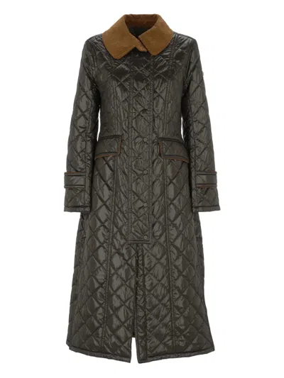 Quilted High-neck Coat In Burgundy