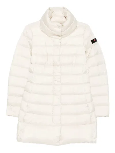 Padded Down Coat With Quilted Design In White