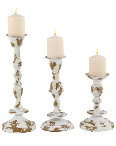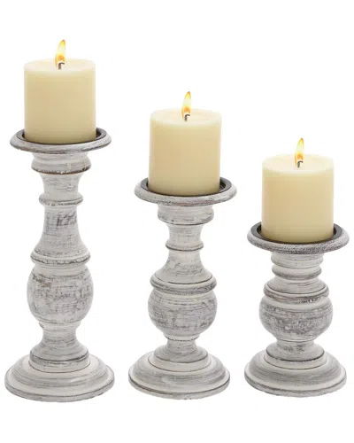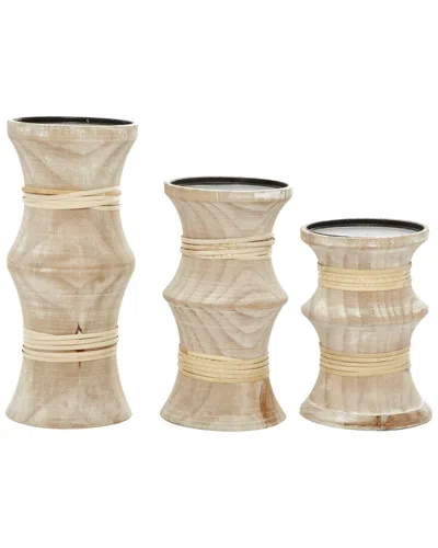 Set Of 3 Farmhouse Solid Wood Candle Holder In Cream