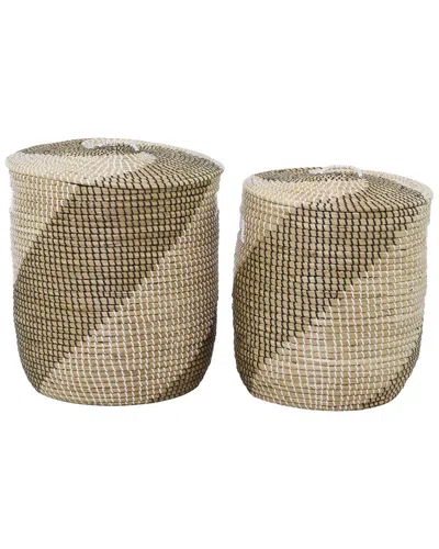 Set Of 2 Brown Sea Grass Traditional Storage Basket
