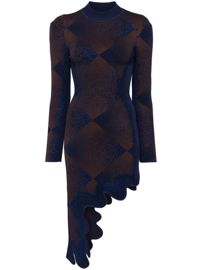 Brooklyn Wavy Asymmetric Knitted Mini Dress In Blue