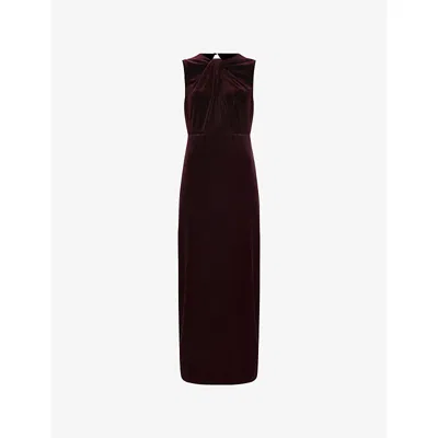 Womens Burgundy Petite Ava Twist-front Stretch-velvet Maxi Dress