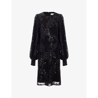 Womens Odette Sequin-embellished Woven Mini Dress Black