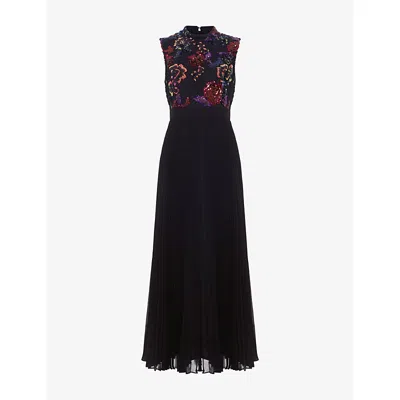 Womens Black Lela Floral-sequin Woven Maxi Dress