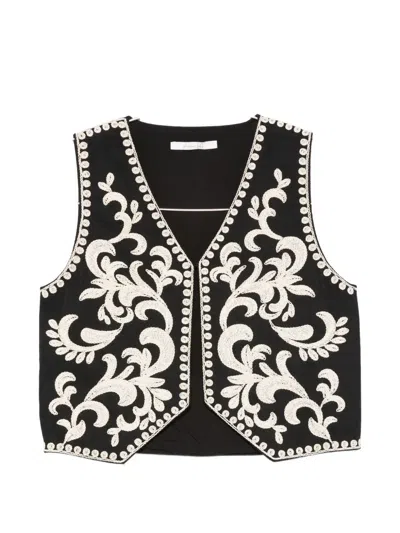 Floral-embroidered Waistcoat In Black