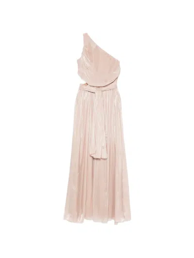 One-shoulder Pleated Maxi Dress In Neutral