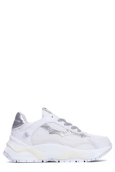 Rocx Low Sneakers In White Leather And Fabric In Purple