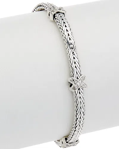 Silver 0.19 Ct. Tw. Blue Topaz Woven Bracelet In Metallic