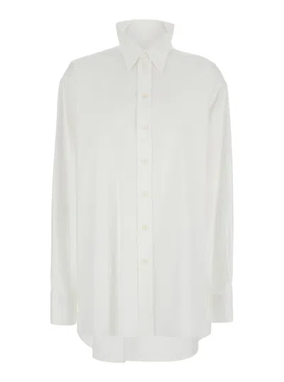 White Shirt With Classic Collar And Logo Embroidery On The Cuff In Cotton Woman