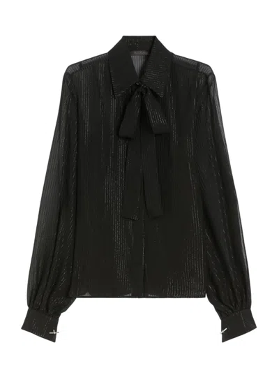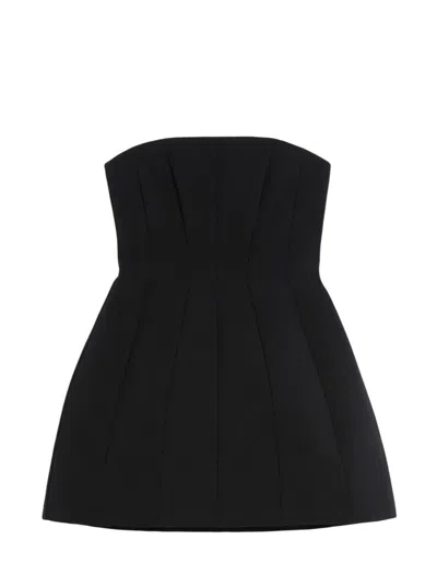 钢琴黑色拉伸羊毛karub宽腿裤子 In Black