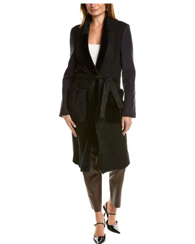 Leather-trim Wool Coat In Blue