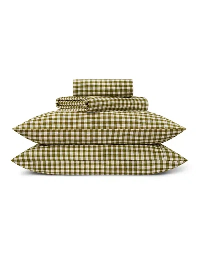 Linen Blend Gingham Sheet Set In Green