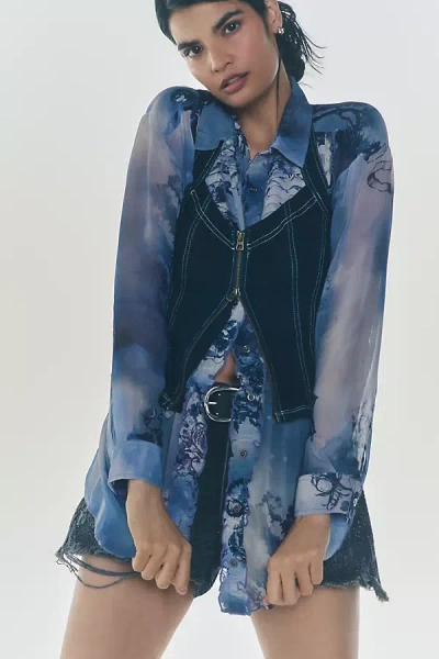 Ski Motif Long-sleeve Denim Buttondown Shirt In Blue