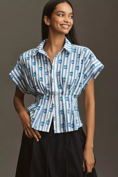 The Keira Waisted Tuxedo-front Blouse By In Blue