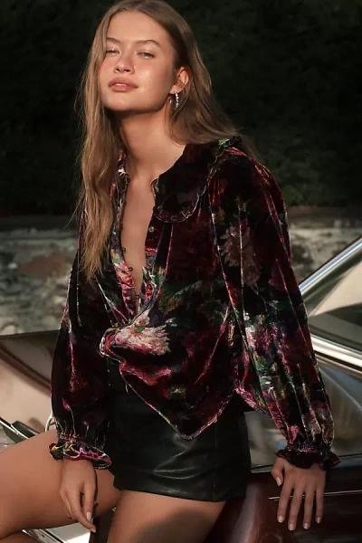 The Keira Collared Button-front Blouse By : Long-sleeve Velvet Edition In Multi