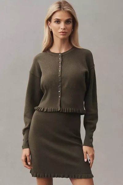 Long-sleeve Ruffle-hem Cardigan Sweater In Gray