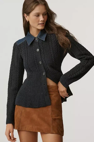 Mock-neck Cutaway Cardigan Sweater In Gray