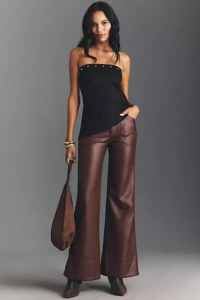 The Rylan Faux-leather Relaxed High-rise Flare Pants By In Brown