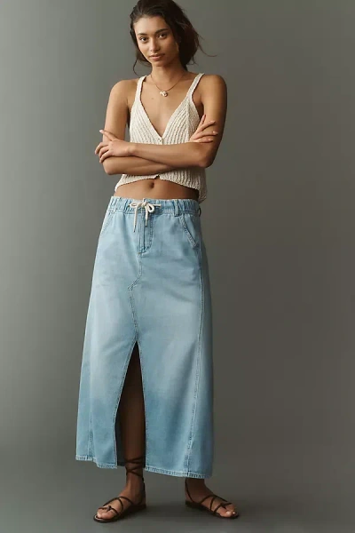 Smocked Denim Maxi Skirt In Blue