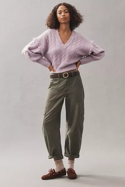 V-neck Drop Shoulder Cable Sweater In Purple