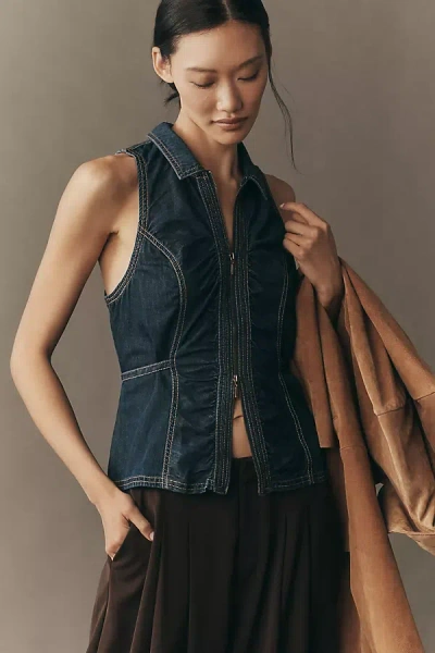 Denim Zip-front Vest Top In Blue