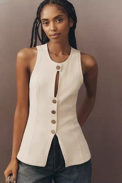 Keyhole Buttondown Vest In White