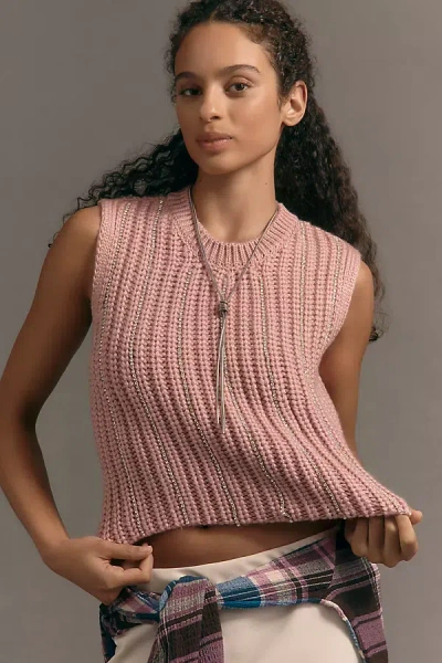 Metallic Crewneck Muscle Sweater Vest In Pink