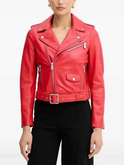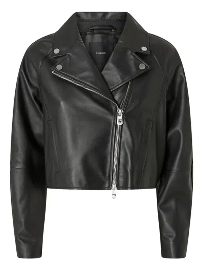Short Zipped Nappa Leather Biker Jacket In Limo Black