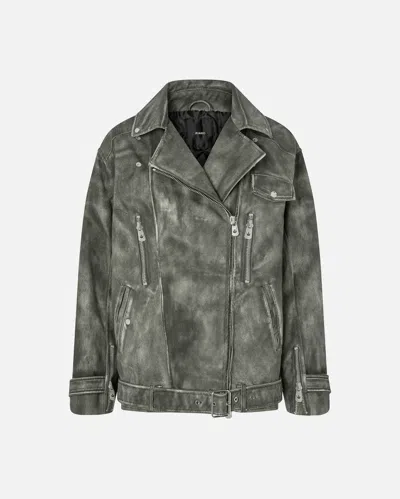 Adjustable Fit Biker Jacket With Metallic Accents In Neutral