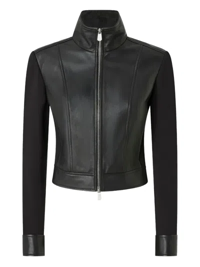 Blouson De Motard En Cuir Avec Dos En Tissu In Black