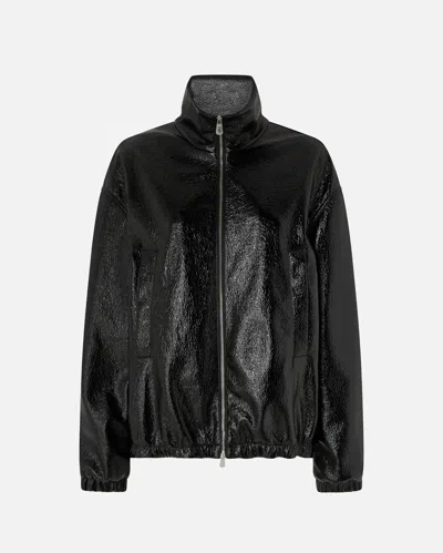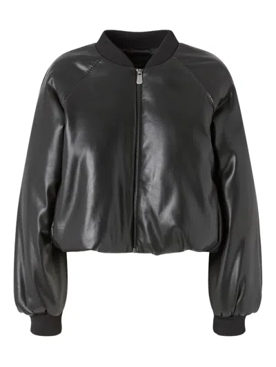 Black Cropped Bomber Jacket With Front Zip Closure In Ecoleather Woman
