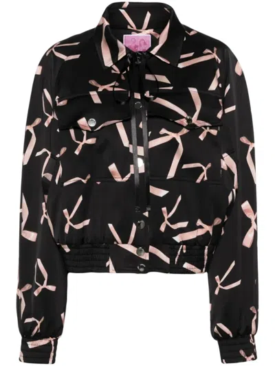 Bow-print Bomber Jacket With Cropped Silhouette In Multi