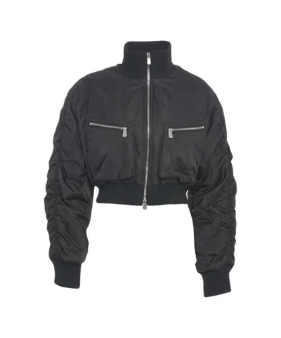 Cropped Bomber Jacket With Gathered Sleeves In Black