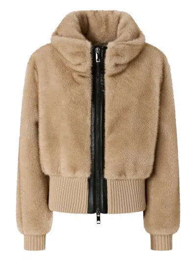 Bagels Beige Bomber Jacket With Front Zip Closure In Ecofur Woman In Nude