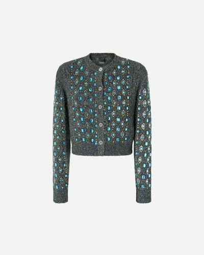 Knit Cardigan Sweater With V-neckline And Button-down Front In Blue